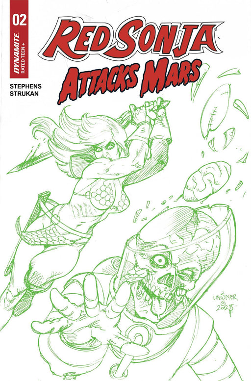 RED SONJA ATTACKS MARS #2 CVR K FOC 7 COPY INCV LINSNER GREEN LINE ART